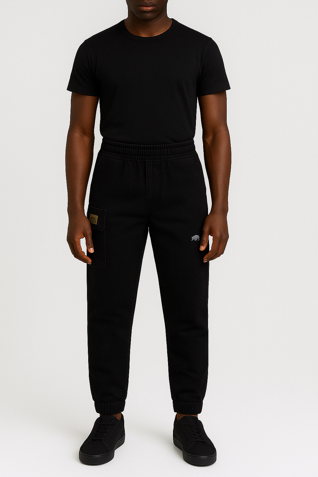 The jet black Bapotc cargos jeans are bold, clean & powerful. Made with stretch denim and elastic ankle cuffs, this design includes the embroidered Bapotc logo on the pocket and sleek ankle zippers for easy wear. [custommize your own]